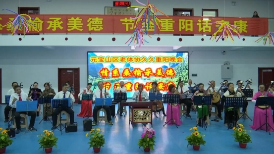 当晚,元宝山区老年体协还举办了“情系桑榆承美德 节至重阳话安康”久久重阳晚会。老人们一边欣赏《蒙古短调联奏》、歌伴舞《共圆中国梦》、健身气功舞《书简》等精彩节目,一边交流讨论各自准备的节目,欢声笑语不断。