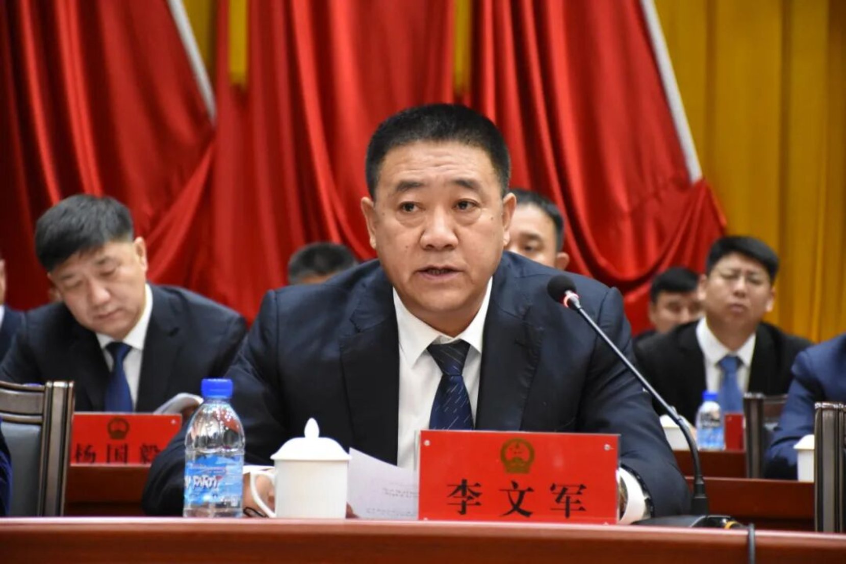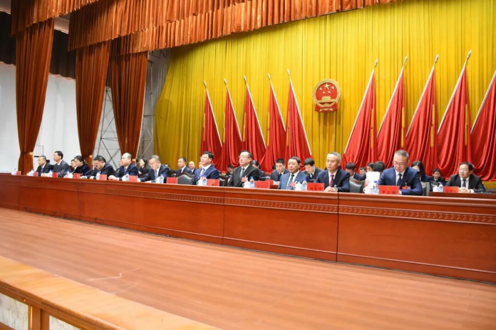 大会主席团常务主席徐立军、李凯、李国军、李文军、张群、贾树顺、于景春在主席台前排就座。