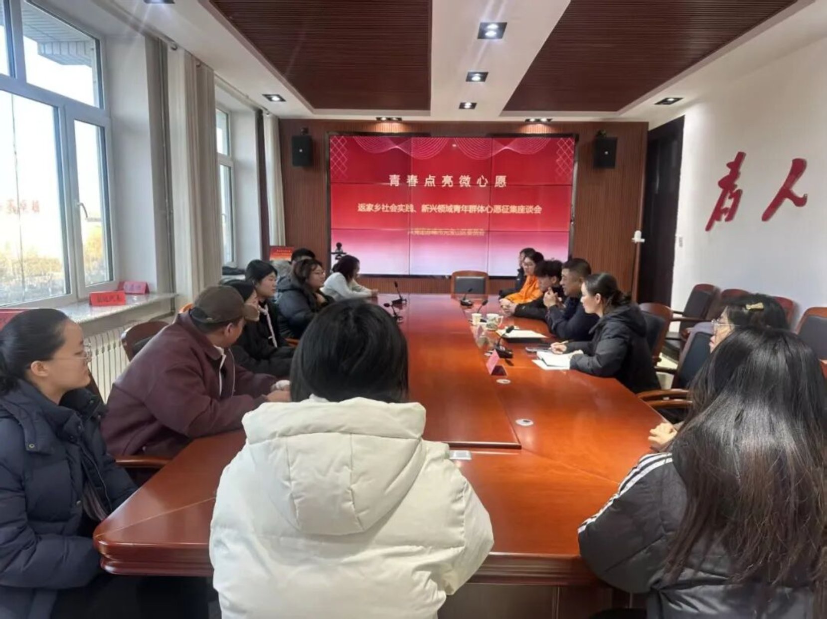 为深入贯彻落实习近平总书记关于青年工作的重要思想,进一步加强对新兴领域青年的联系、凝聚、服务、引领,探索通过人大、政协等制度化平台传递青年心声、反映青年愿望、促进青年发展、引领青年建功,进一步做好共青团协商代言工作,1月13日,团区委联合区总工会以“青春点亮微心愿·青听青年“心”愿望”为主题开展2026年度“共青团与人大代表、政协委员面对面”活动,部分区人大代表、政协委员、返家乡社会实践大学生、新兴领域青年代表以及相关部门负责人30余人参加活动。