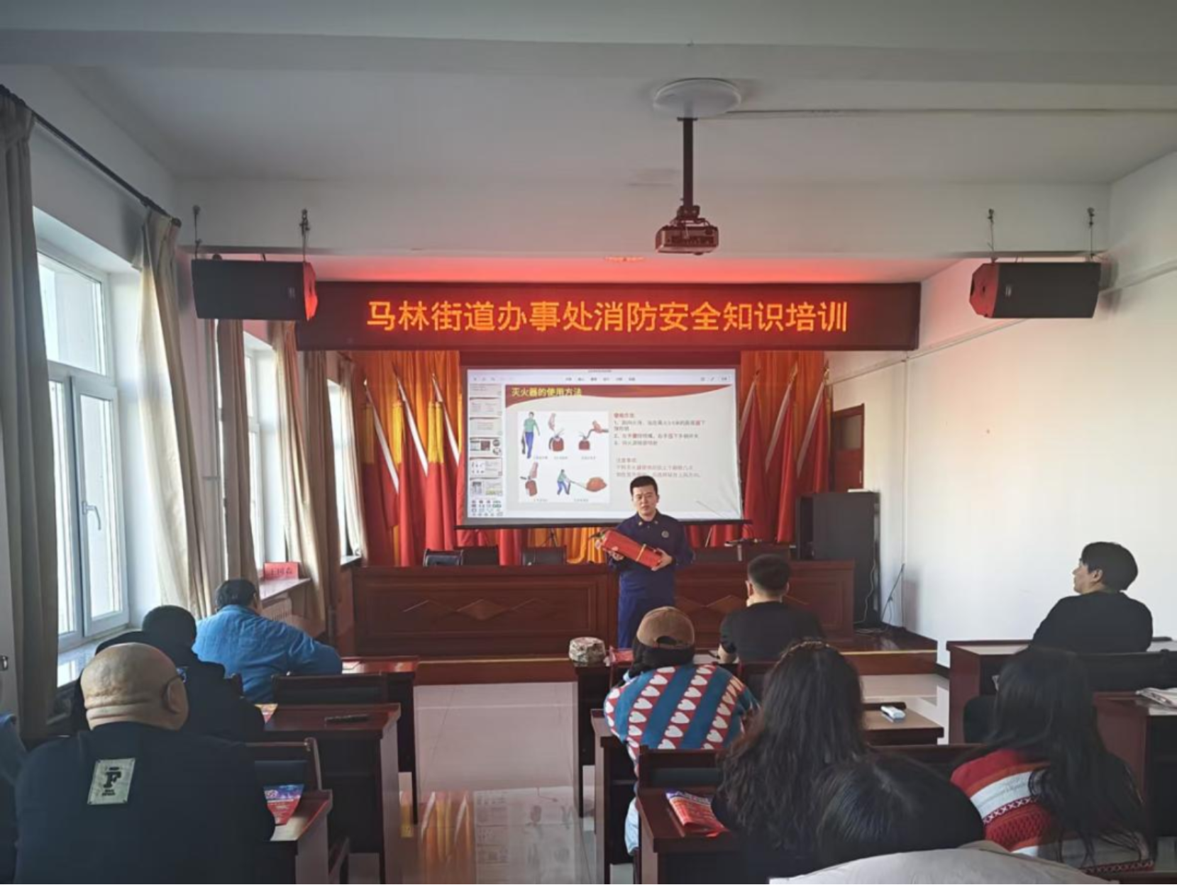 近日,马林街道联合区消防救援大队组织开展消防安全专题培训暨实操演练活动,提升辖区工作人员、商户及居民的消防安全意识和应急处置能力,筑牢基层消防安全“防火墙”。该街道各站室工作人员、社区网格员、沿街商户及居民代表共计30余人参加培训。