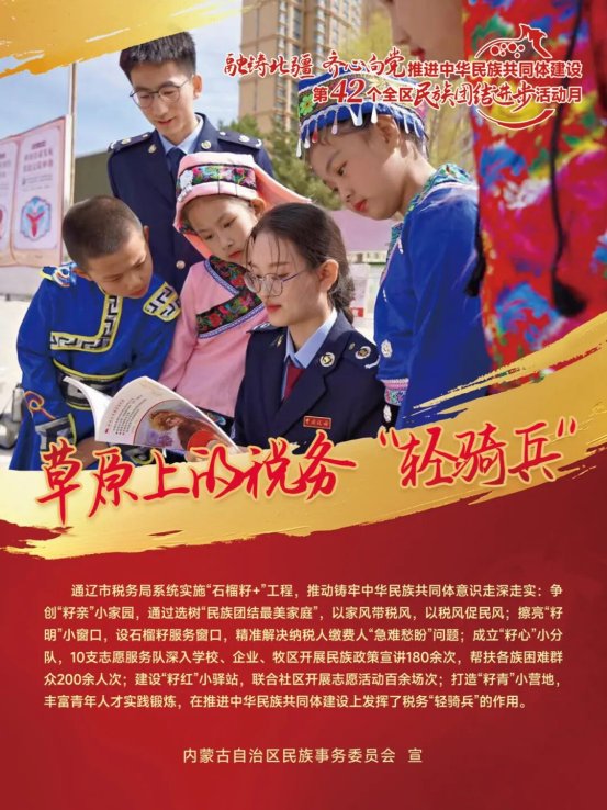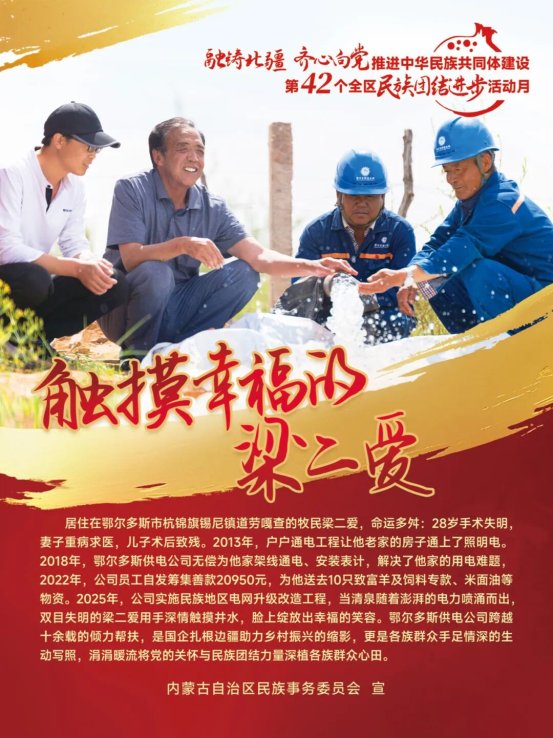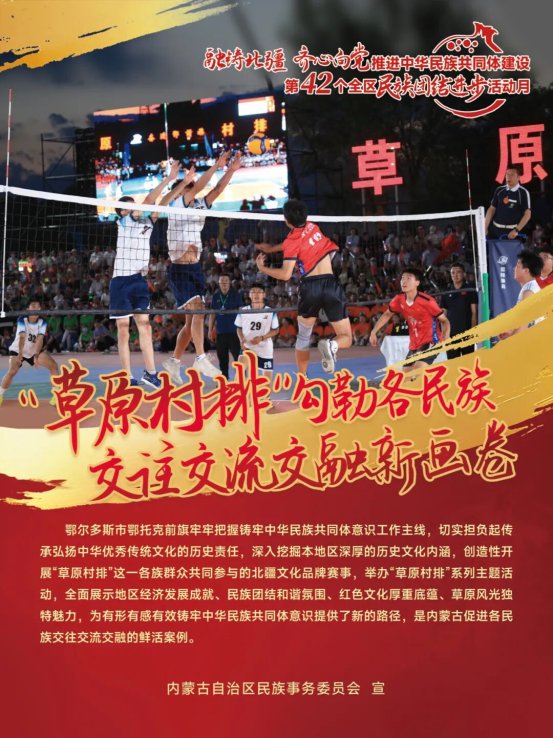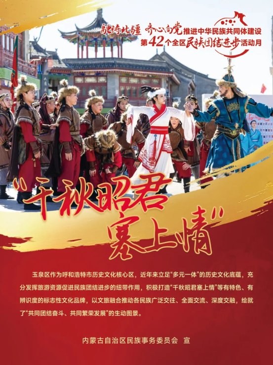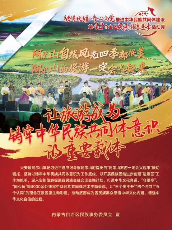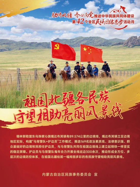 2025年9月是第42个全区民族团结进步活动月。为做好第42个全区民族团结进步活动月工作,深入学习宣传习近平总书记关于加强和改进民族工作的重要思想,生动讲好新时代内蒙古民族团结进步故事,自治区民委广泛征求民族团结进步主题素材、认真提炼总结民族团结进步故事,精心设计制作推出第42个全区民族团结进步活动月主题系列海报,现进行广泛推广和宣传,欢迎大家下载使用、积极转载,共同讲好新时代内蒙古推进中华民族共同体建设故事!