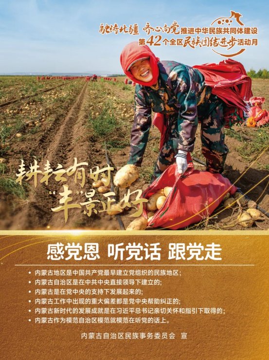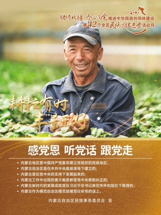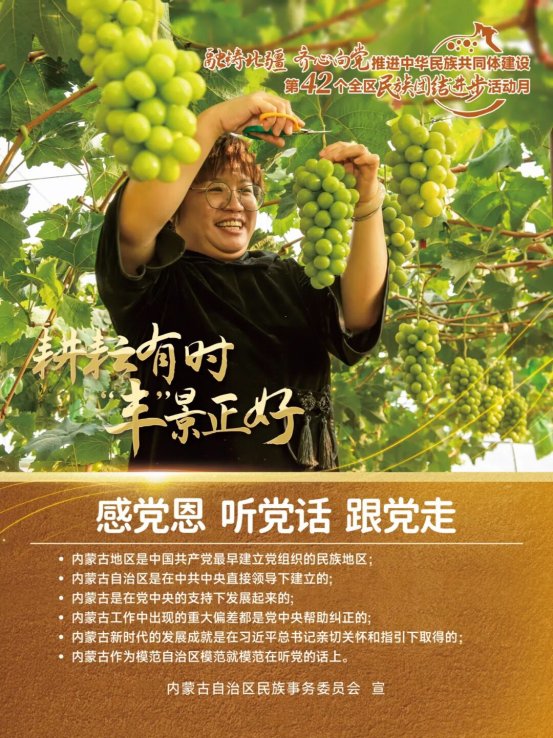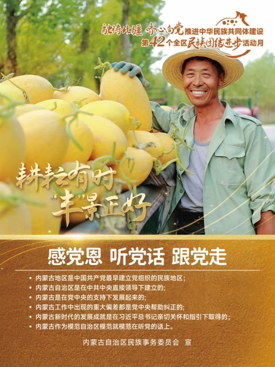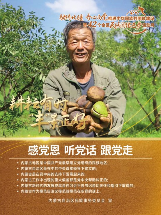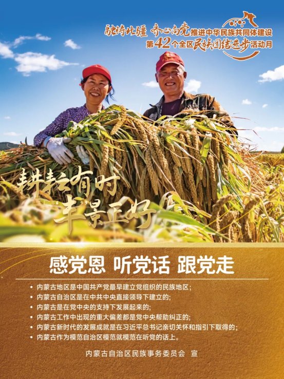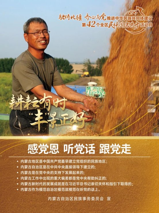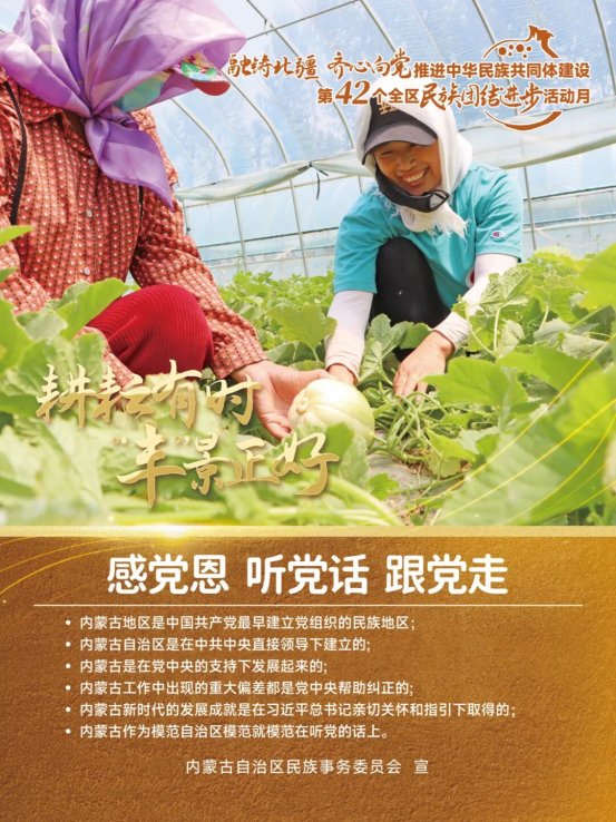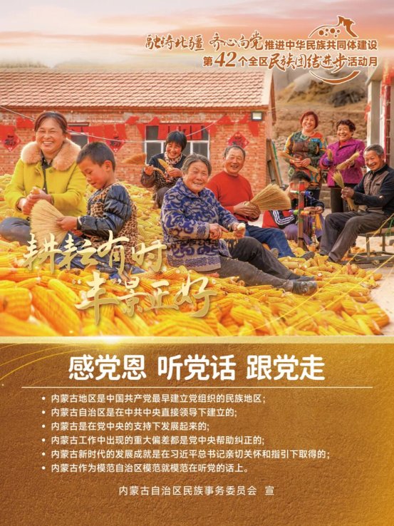 2025年9月是第42个全区民族团结进步活动月。为做好第42个全区民族团结进步活动月工作,深入学习宣传习近平总书记关于加强和改进民族工作的重要思想,生动讲好新时代内蒙古民族团结进步故事,自治区民委广泛征求民族团结进步主题素材、认真提炼总结民族团结进步故事,精心设计制作推出第42个全区民族团结进步活动月主题系列海报,现进行广泛推广和宣传,欢迎大家下载使用、积极转载,共同讲好新时代内蒙古推进中华民族共同体建设故事!