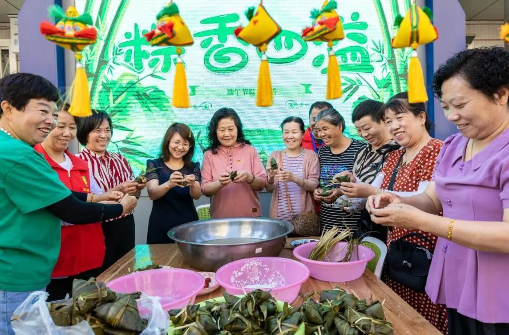 ▲端午佳节,内蒙古自治区呼和浩特市玉泉区清泉街社区群众一起包粽子。 图源:中国民族报