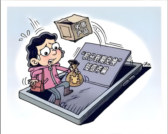 诈骗分子冒充通信公司“官方平台”,向消费者发送“积分即将清零”的虚假短信或邮件,制造时间紧迫的假象,诱导消费者点击链接。一旦消费者点击进入,就会被要求输入银行卡号、密码、验证码等信息,以完成所谓的“积分兑换”。等被害者下单成功后,再由“虚假客服”告知受害者,购物满一定数额可享“优先发货”,实际上被害者所换购的商品根本不会发货亦无法退款。