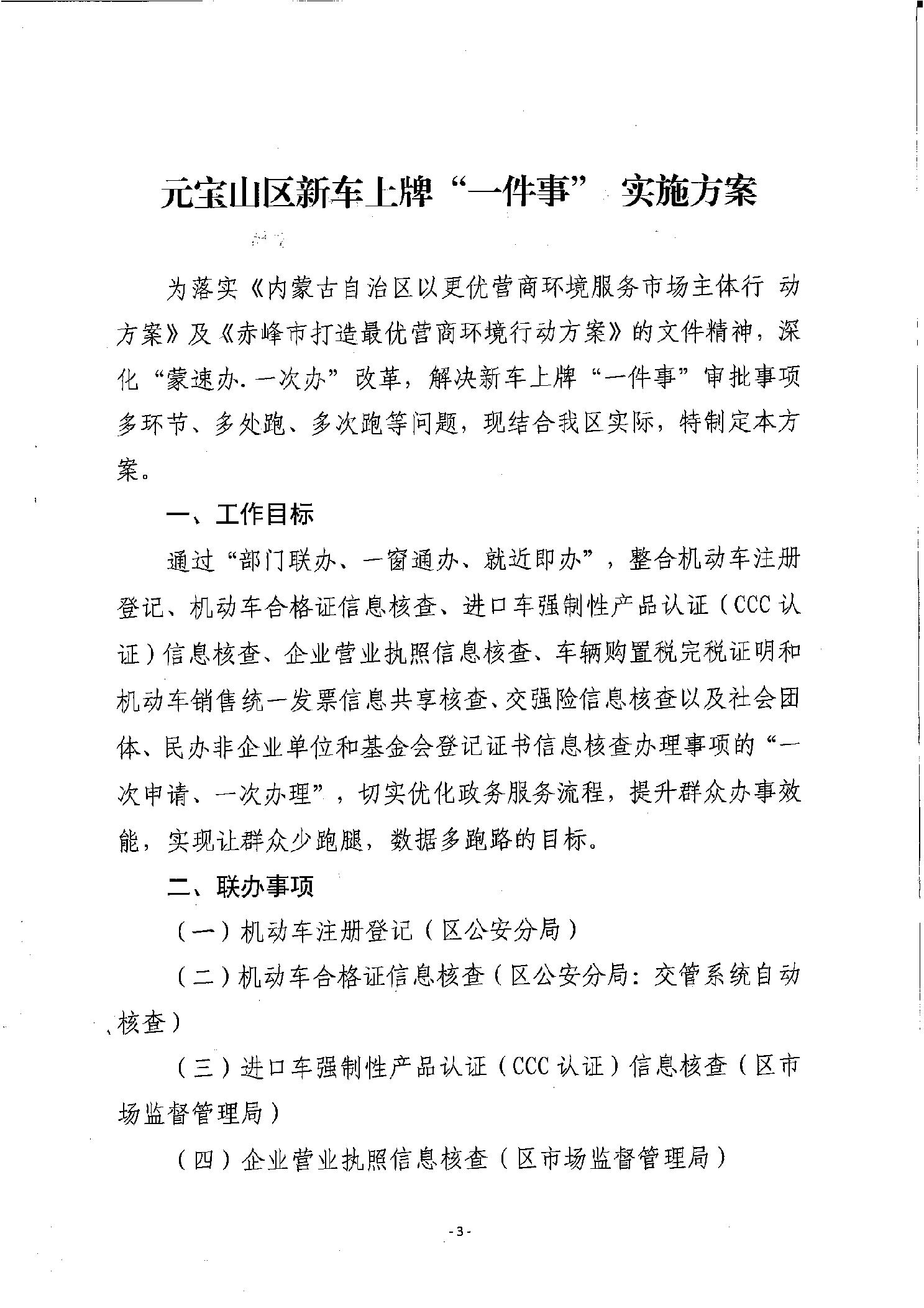 赤峰市公安局元宝山区分局等四部门关于印发《元宝山区新车上牌“高效办成一件事”工作方案》的通知