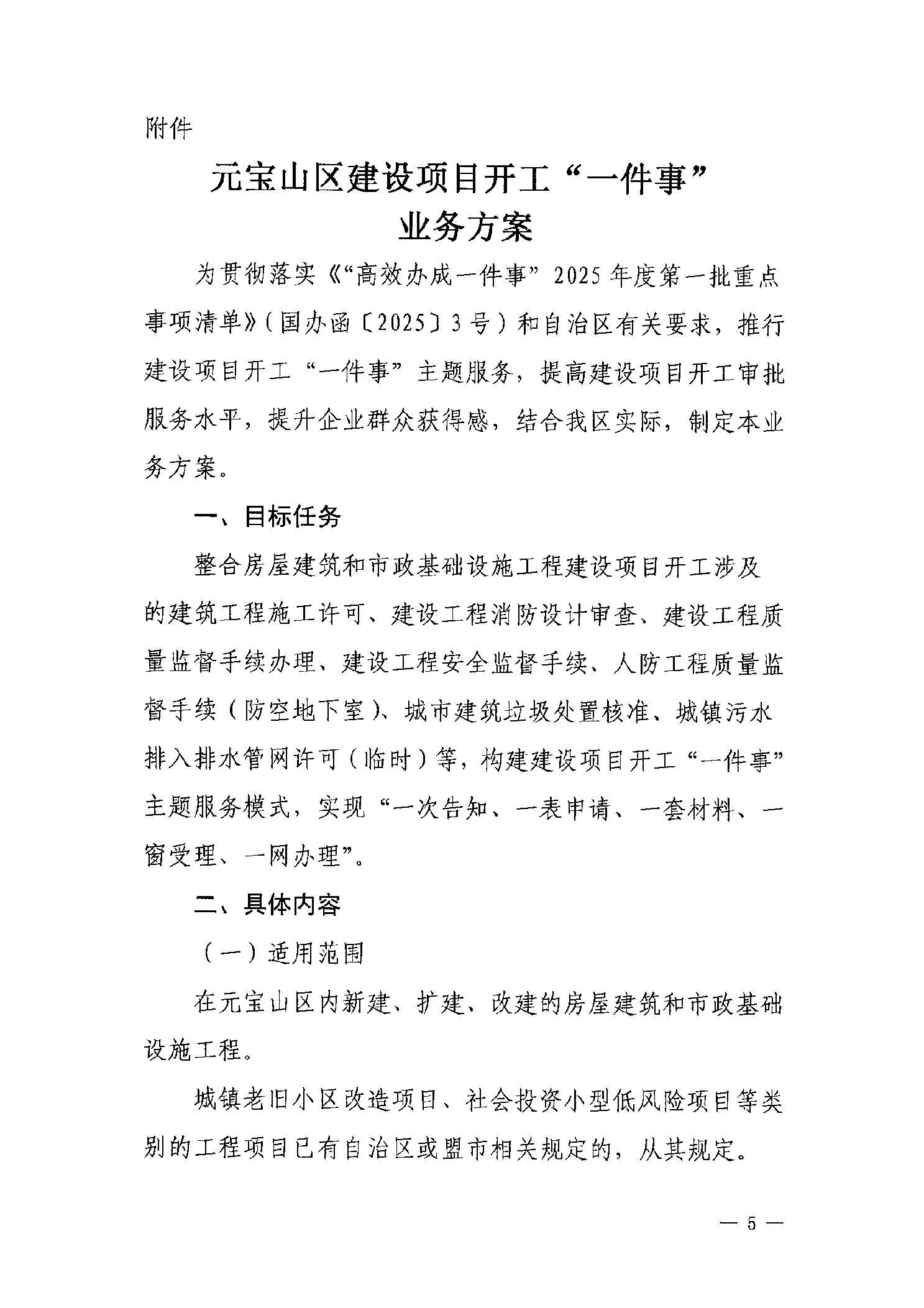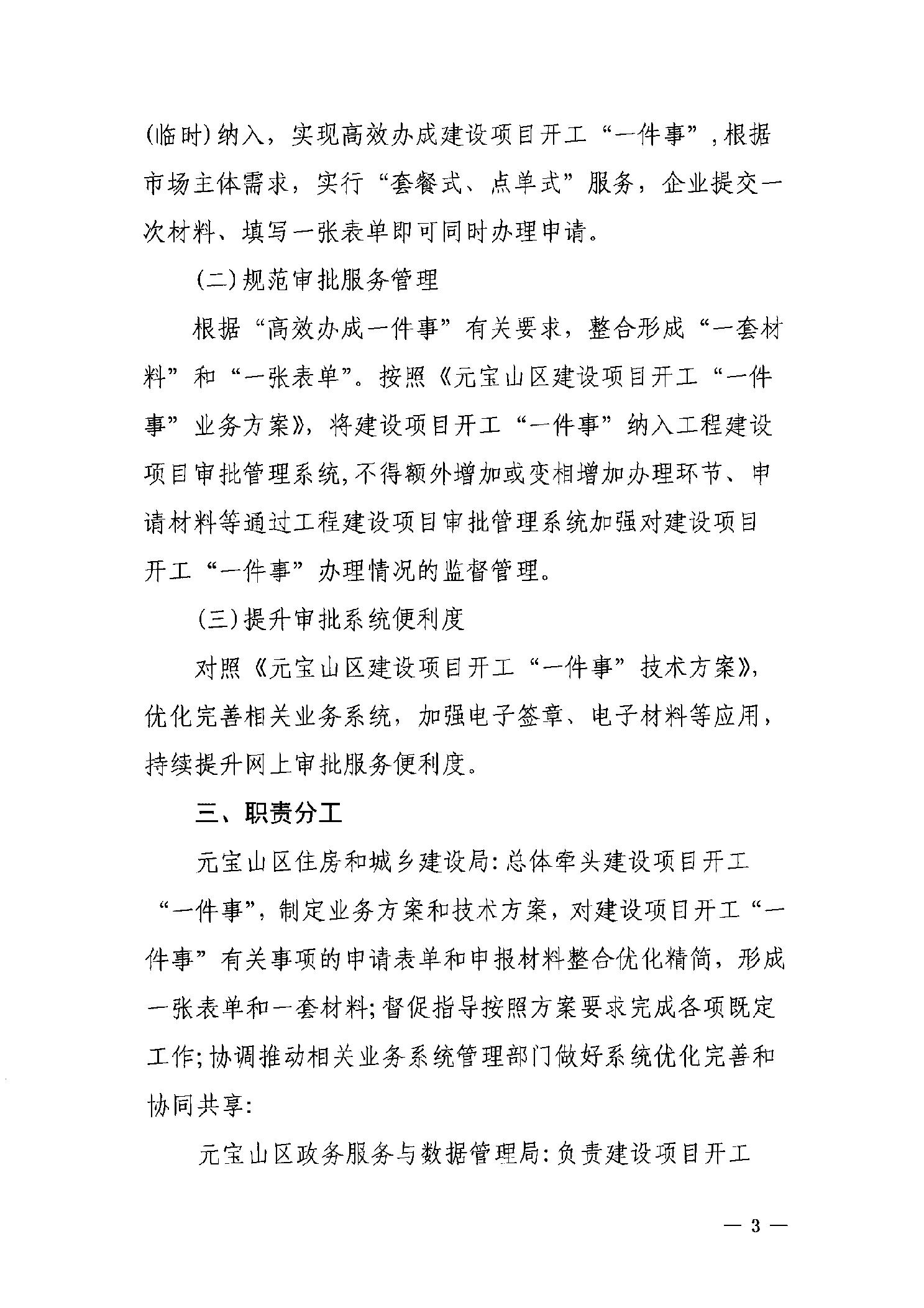 元宝山区住房和城乡建设局关于印发《元宝山区建设项目开工“一件事”实施方案》的通知