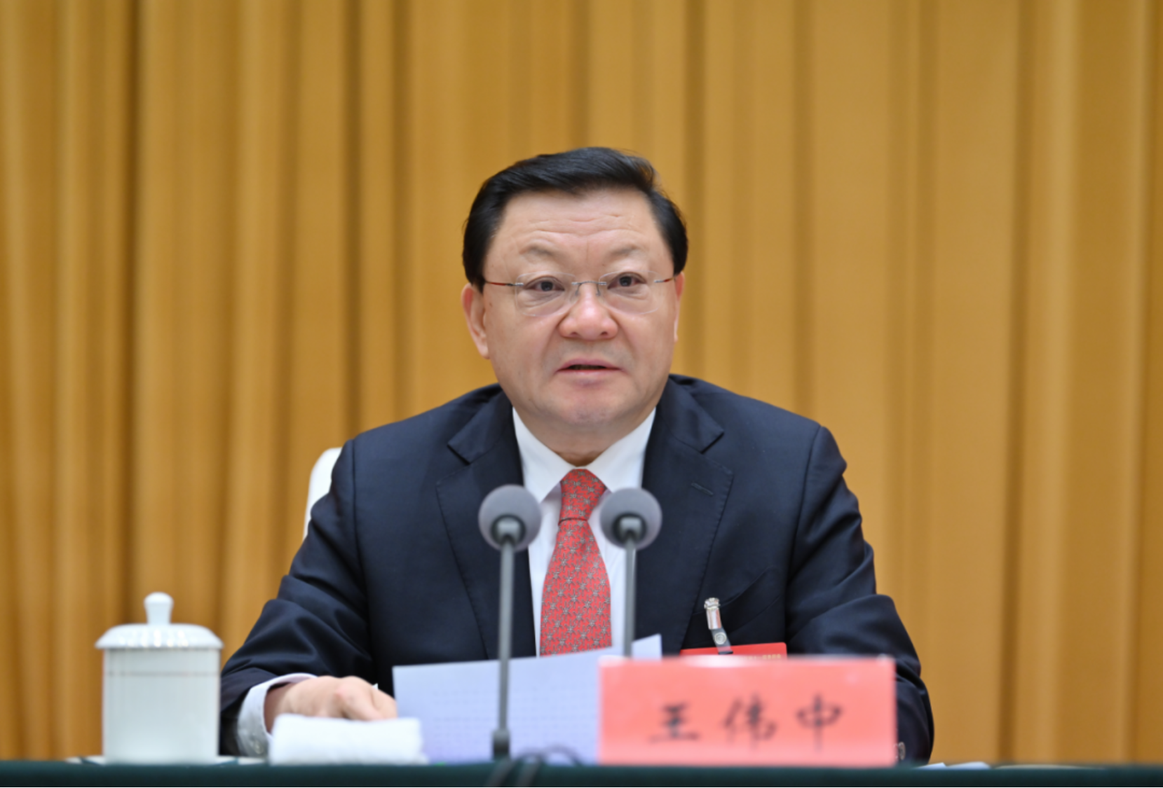 12月29日,自治区党委书记王伟中主持中国共产党内蒙古自治区第十一届委员会第十一次全体会议第一次全体会议并讲话。记者 马建兵 摄