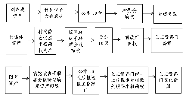 3.由镇统一组织实施形成的资产,原则上确权到村,难以明确到村的产权归属镇,按照国有资产进行管理,及时确权移交。