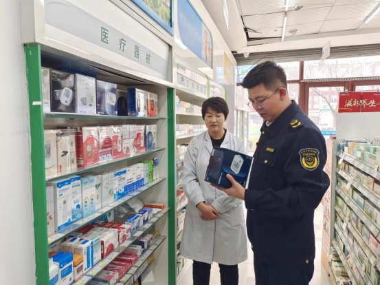 此次行动覆盖辖区多家药店,聚焦群众日常接触多、关注度高的品类,重点围绕医疗器械的进货渠道、产品资质、储存条件、销售记录等关键环节展开全面排查。从家用血糖仪、血压计,到医用外科口罩、退热贴等,逐一“把脉问诊”。执法人员先查“源头”,核对医疗器械的进货票据、供应商资质,确保每一件产品都能“追根溯源”;再看产品“资质”,查验产品注册证、生产许可证,严防“三无”产品或过期产品流入市场;最后盯“储存”,对照产品说明书检查温湿度记录,避免因储存不当影响产品质量,坚决杜绝虚假、夸大医疗器械功效的违法宣传行为,守护消费者的安全。