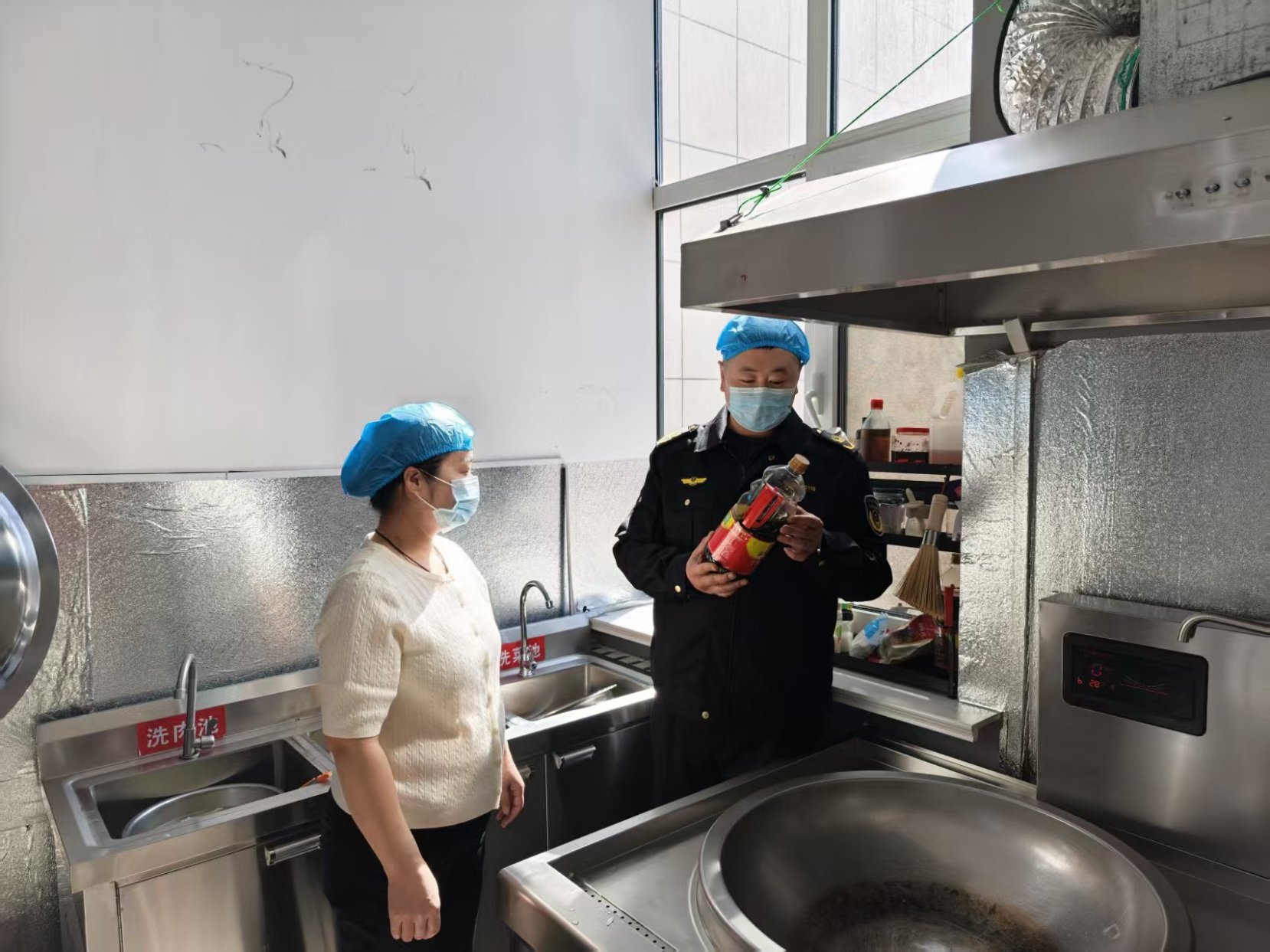 此次检查执法人员采取实地查验,现场询问的方式,重点围绕三个关键环节开展"安全体检":一是核查经营资质;营业执照、食品经营许可证、从业人员健康证明等是否齐全有效,是否存在超范围经营;二是严守食品安全;重点检查食材采购渠道、进货查验制度、食品储存条件和“三防设施”,严禁采购使用过期变质、来源不明的食品;三是查看操作规范;深入厨房查看食品清洗切配、加工操作过程是否符合食品安全规范,生熟是否分开,避免交叉污染等隐患,餐饮具清洗消毒设备的运行情况和记录是否完整,食品留样数量、时间和记录是否规范;检查过程中,执法人员边检查、边指导、边整改的原则,同时向托管机构负责人及从业人员宣传相关法律法规,强化经营者“安全第一、主体负责”的责任意识,指导完善制度、规范流程、将食品安全要求融入到日常运营,守住安全底线,助力经营主体提质升级,同时倡导托管机构宣传“厉行节约、反对浪费”的理念,按需供餐,制止餐饮浪费。
