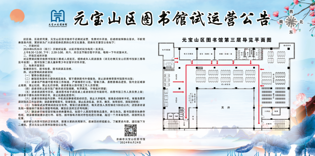 经区委、区政府同意,元宝山区图书馆将于近期试运营,免费对外开放,后续将按照群众要求,不断完善服务内容,更好的为广大读者提供优质的公共文化服务。现将有关事宜公告如下:
