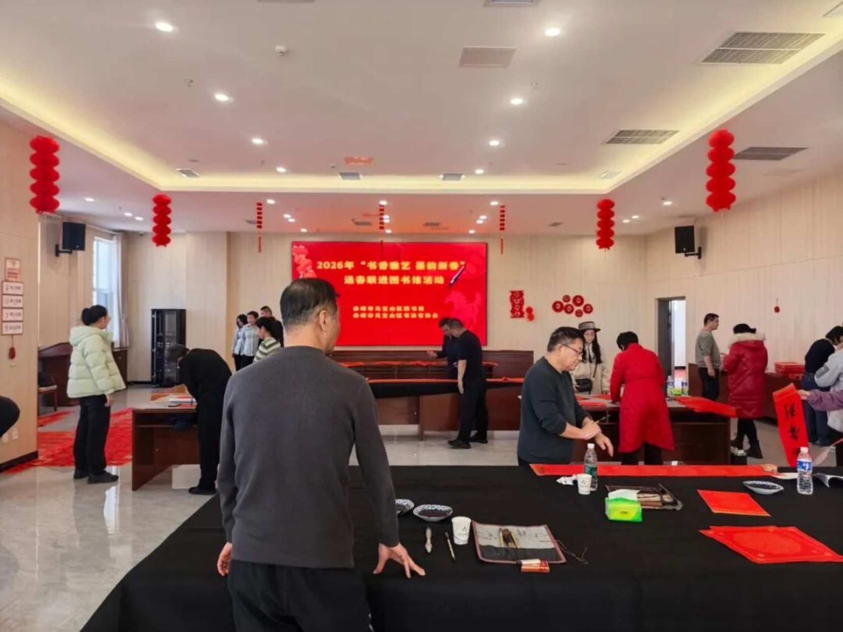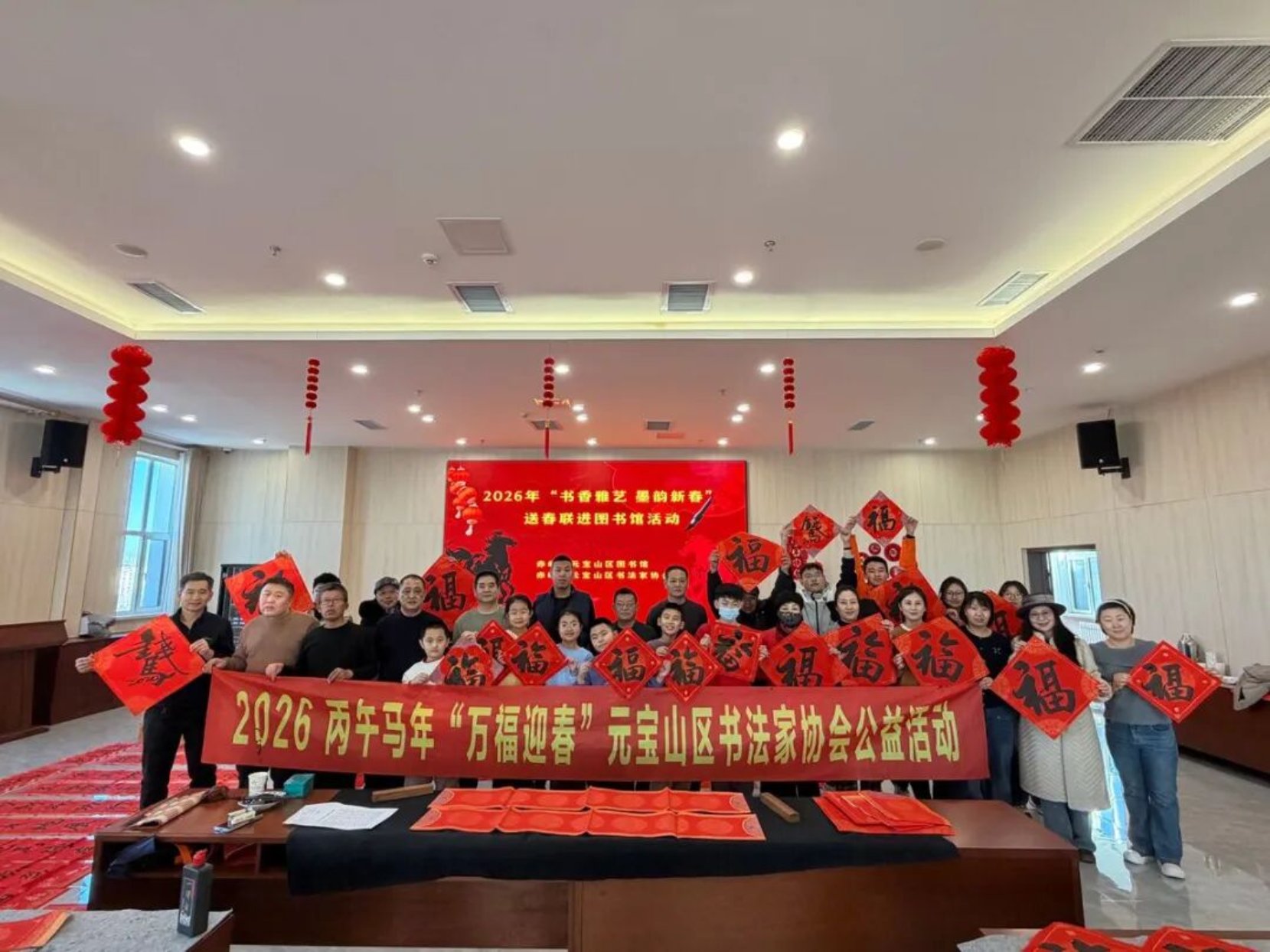 墨香润新春,春联送吉祥。为深入弘扬中华优秀传统文化,丰富广大读者精神文化生活,营造欢乐祥和、喜庆热烈的新春氛围,2026年2月6日(农历腊月十九),元宝山区图书馆联合元宝山区书法家协会,在图书馆四楼成功举办“书香雅艺 墨韵新春”送春联活动。活动现场暖意融融、墨香四溢,读者踊跃参与、反响热烈,用笔墨承载祝福,用书香点亮新春,为即将到来的春节增添了浓厚的文化韵味与节日温情。