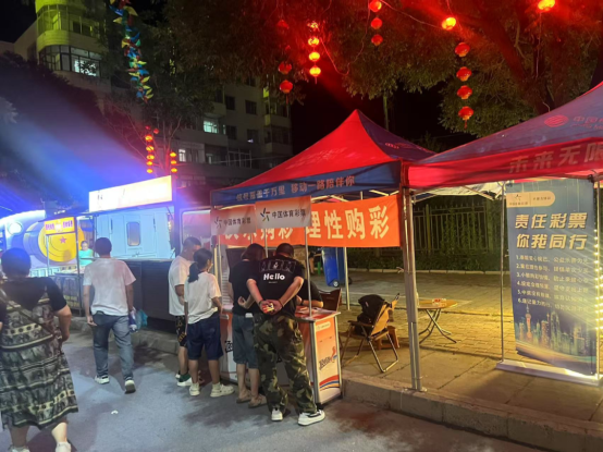 现场设置公益体验区:支持小额娱乐(如30元挑战“一刮三分”投篮,投中赠瓷杯),鼓励适度娱乐、爱心奉献(中奖回馈赠品如瓷杯、水杯或体彩T恤)。参与“拍照转发助力”可免费获得体彩主题袋。活动现场遵循快乐源于过程,参与贵在理性的原则,并严格遵守“禁止向未成年人销售彩票和兑奖”的规定。