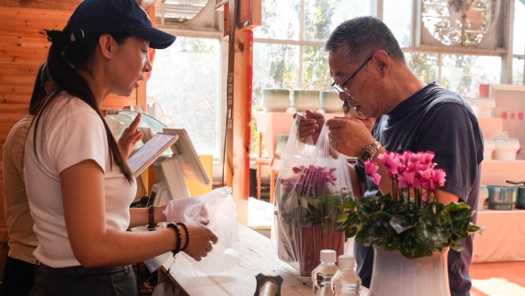 在瓜蔬新艺馆,六角气雾培、全息互动无土栽培等现代农业科技,成为“看得见”的活教材。游客不仅能学习知识,还能在鲜花售卖区带走一盆景区自育的鲜花,或围坐品尝园区自产蔬菜烹制的养生小火锅。从“看农业”到“买农品”再到“吃农产”,农业资源在这里转化为可感、可触、可消费的体验,让“农”不再遥远,而是融入日常。