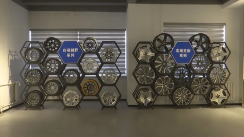 在企业成品展区,一组组锃亮的铝合金轮毂在射灯下闪耀着金属光泽,宛如一件件精雕细琢的艺术品。展区中央,一条微缩的全流程生产线生动展示了轮毂从原材料到成品的蜕变之旅;展台上,各系列成品轮毂琳琅满目:有主打轻量化的镂空运动款,轮辐线条如疾风般凌厉;有专为新能源车设计的低风阻系列,表面处理透着未来科技感;还有复古风格的镀铬经典款,散发着优雅光泽。