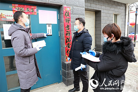 呼和浩特市新城区东风路街道海东路社区书记何静波和党员志愿者们入网、入格、入家庭,对小区进行一次又一次的走访摸排。李捷 摄