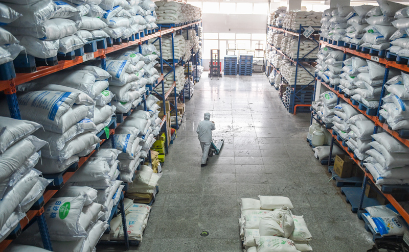 3月6日,工人在内蒙古意林食品有限公司运输生产原料。