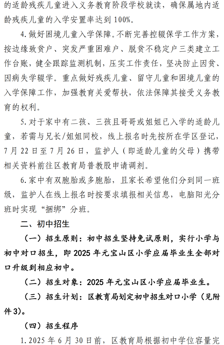 2025年元宝山区义务教育阶段中小学招生工作方案