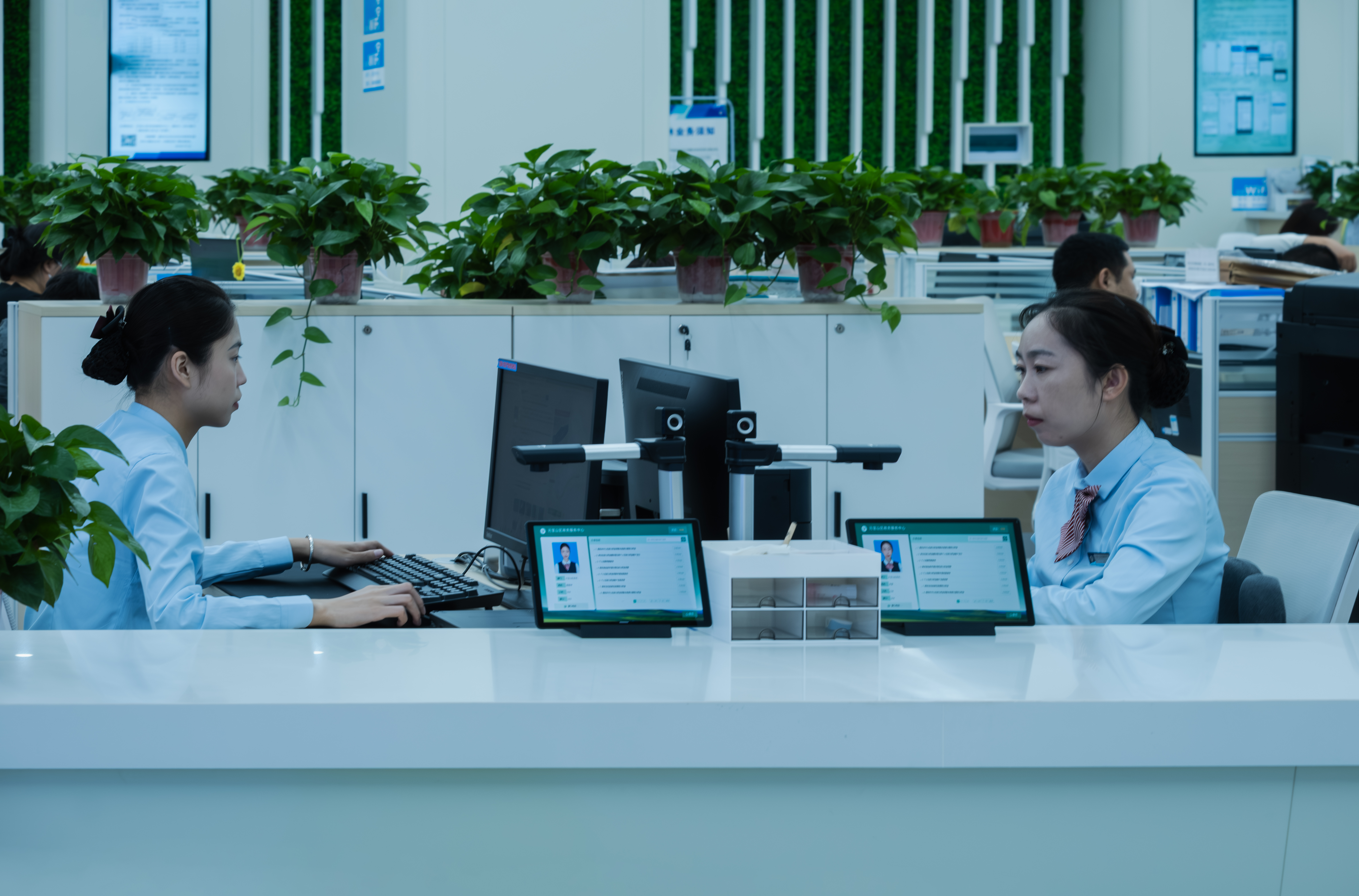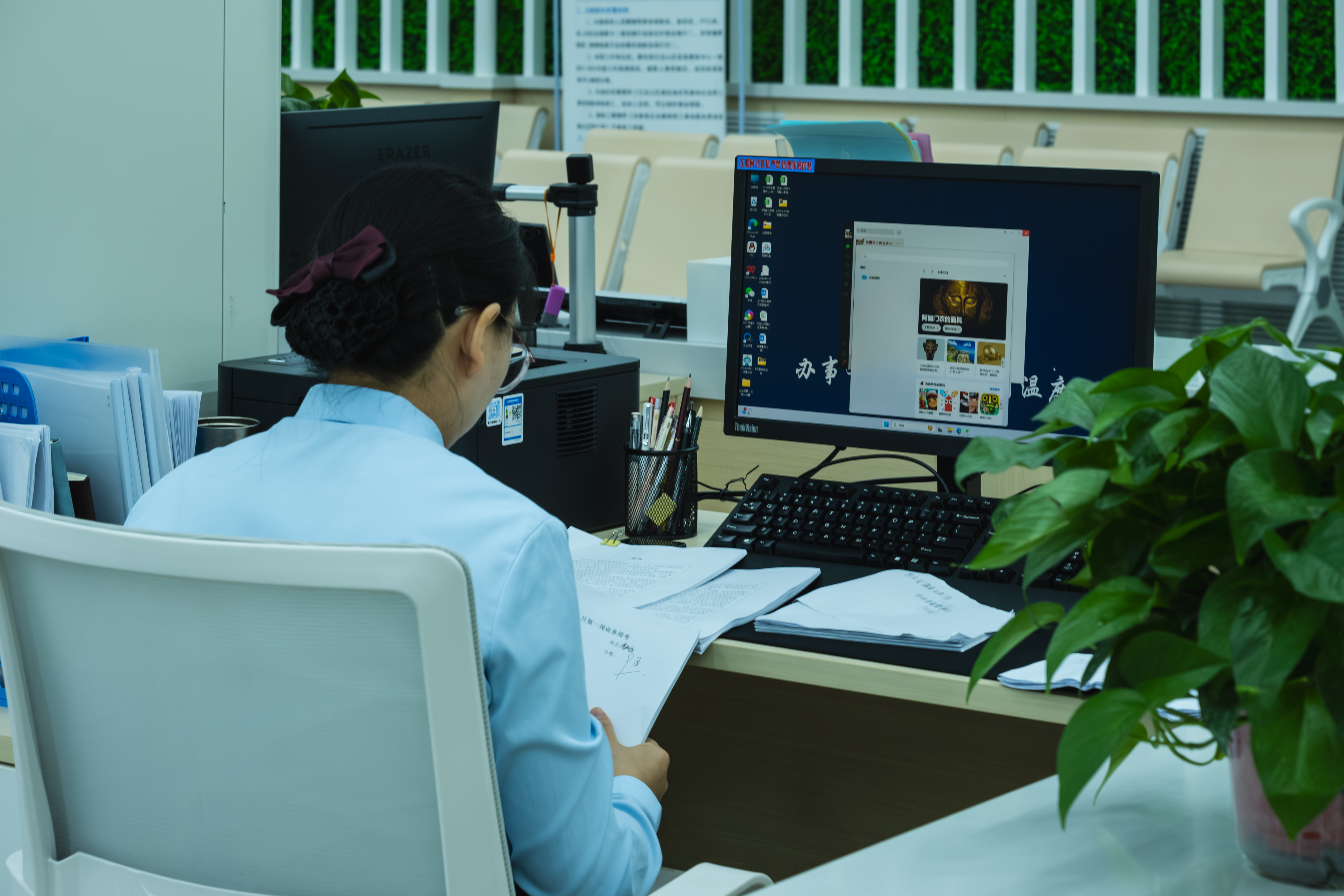 大厅工作人员对材料进行审核、流转 董彦春 摄影
