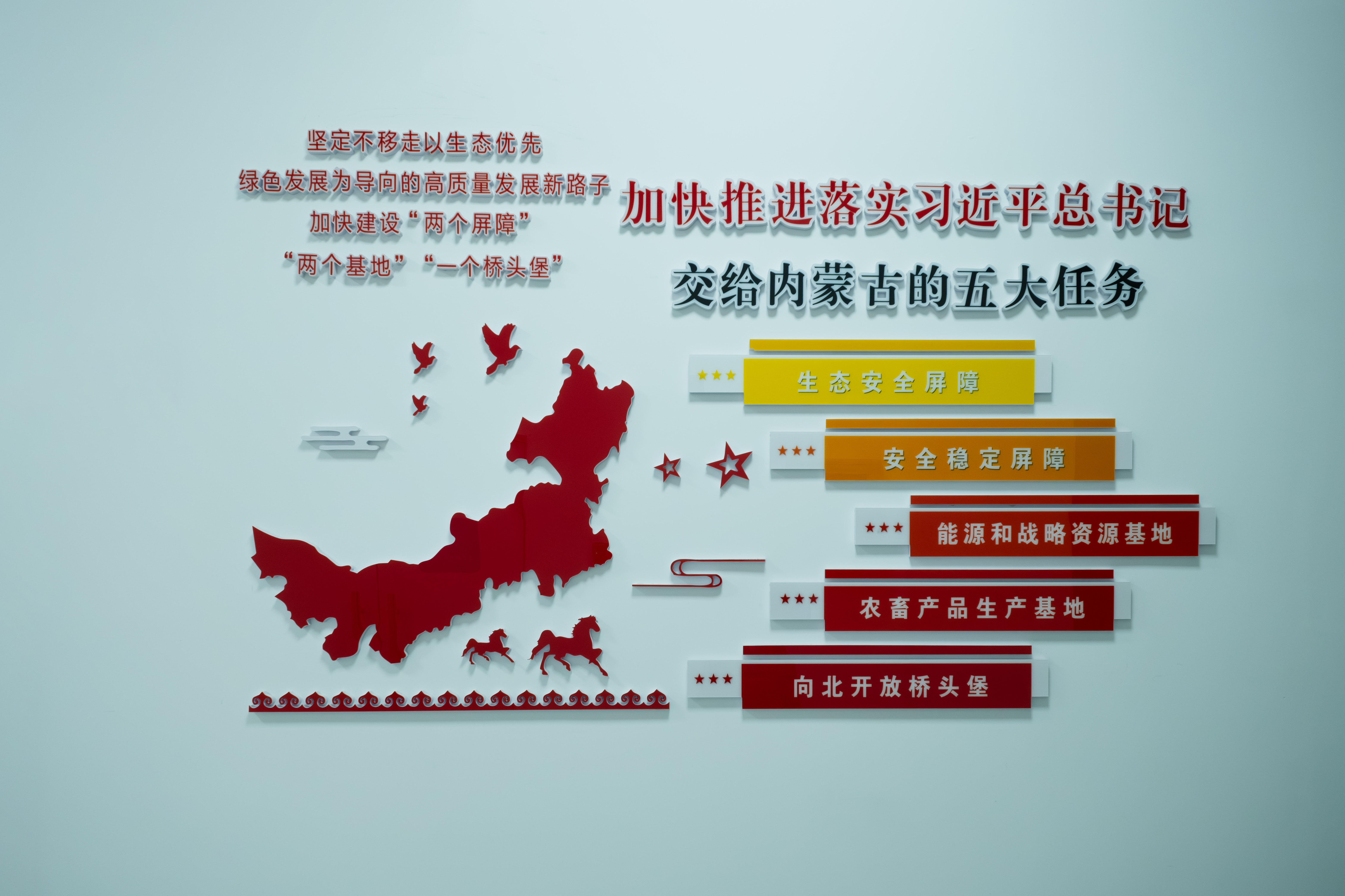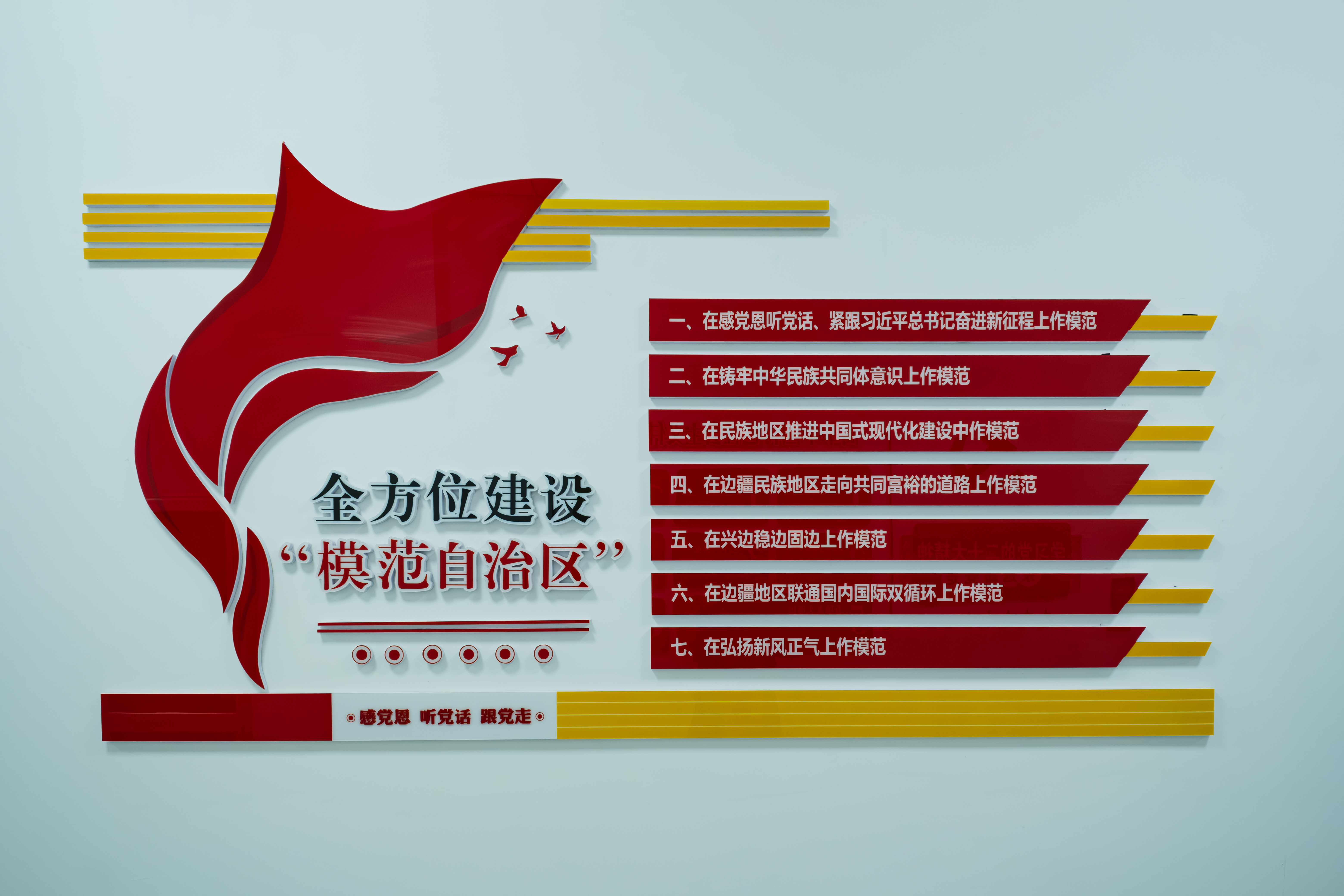 四楼综合办公区张贴“全方位建设模范自治区”宣传标语 董彦春 摄影