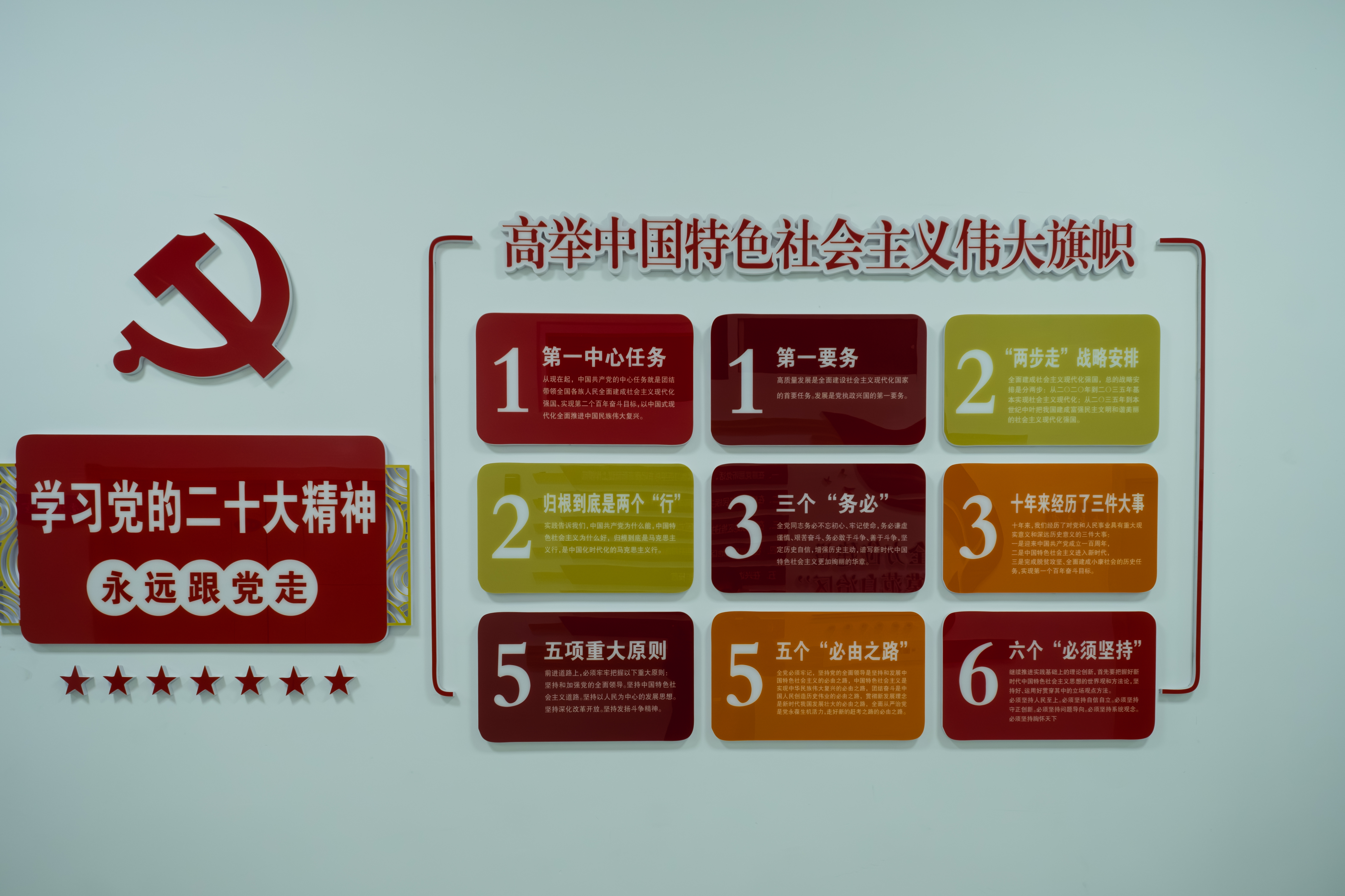 四楼综合办公区张贴党的二十大宣传标语 董彦春 摄影