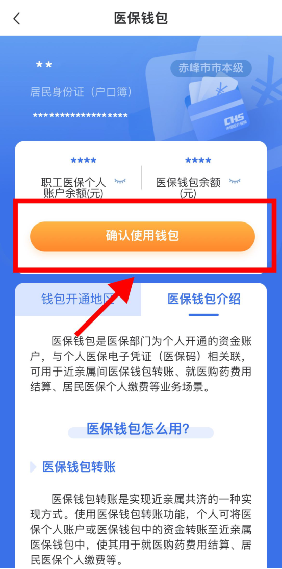 2.在国家医保服务平台首页,点击“医保钱包”,进入之后会显示“确认使用钱包”界面: