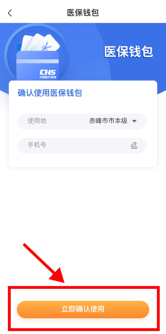 3.点击“确认使用钱包”,显示使用地和手机号信息,点击“立即确认使用”,即完成钱包开立: