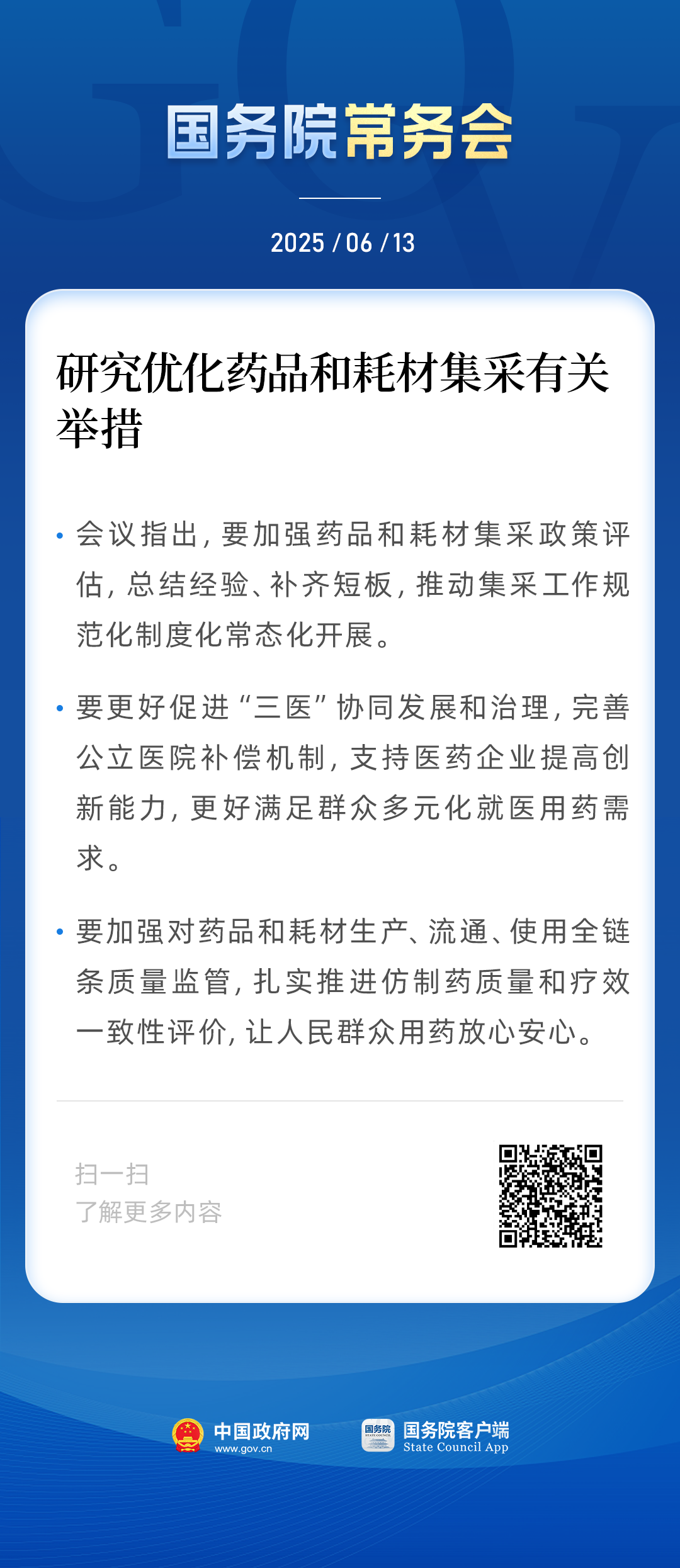 国常会:研究优化药品和耗材集采有关举措