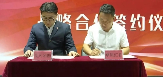 出席仪式的领导为优秀电商团队“良久团购”“老马在草原”团队“智悦天成”商贸公司授予“数商兴农助力官”牌匾。随后,三个团队分别与内蒙古草原汇香食品科技有限公司、内蒙古维聪乳业有限公司、内蒙古赛飞亚集团签订电商带货协议。