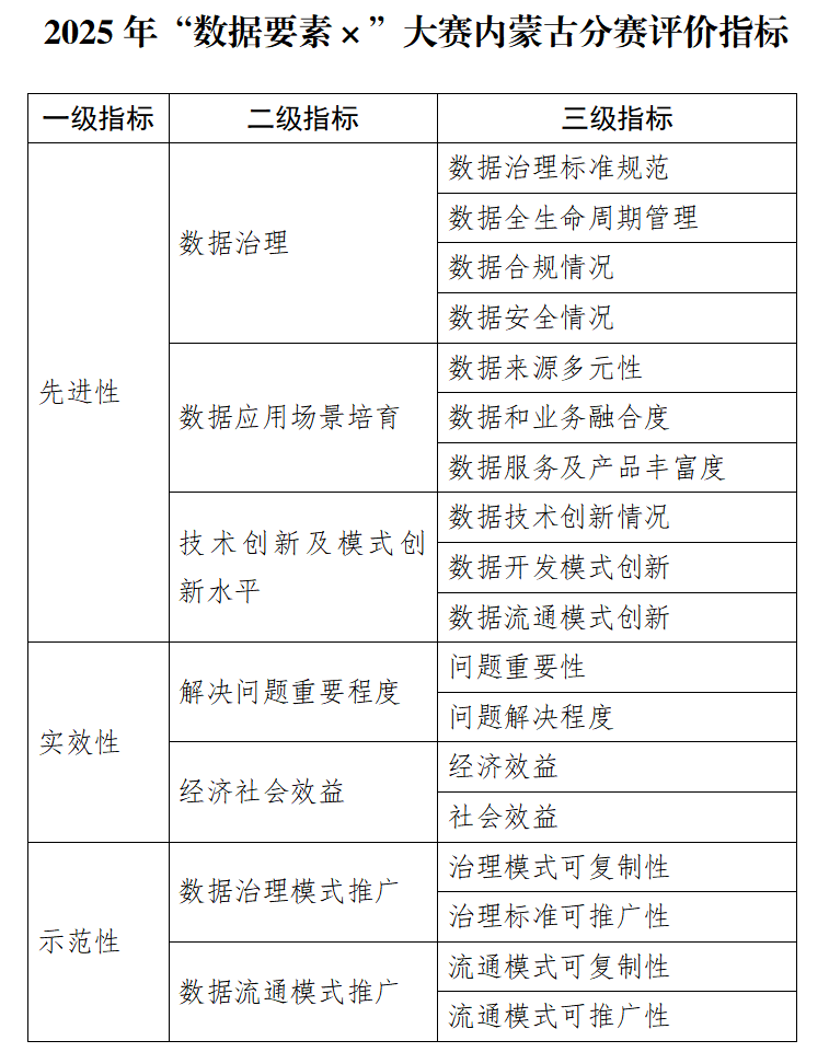 2. 2025年“数据要素×”大赛内蒙古分赛评价指标